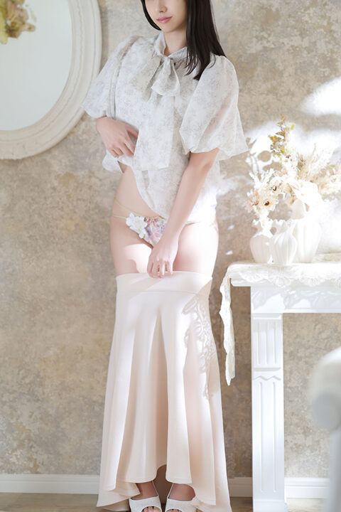 控えめな胸元から流れる曲線は自然体のまま官能を帯び、ウエストからヒップにかけての起伏は、想像よりもずっと肉感的。